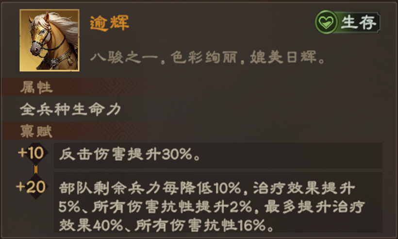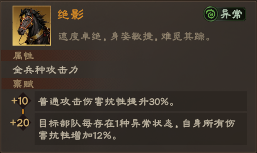 马匹将带来强大的基础属性和禀赋效果: