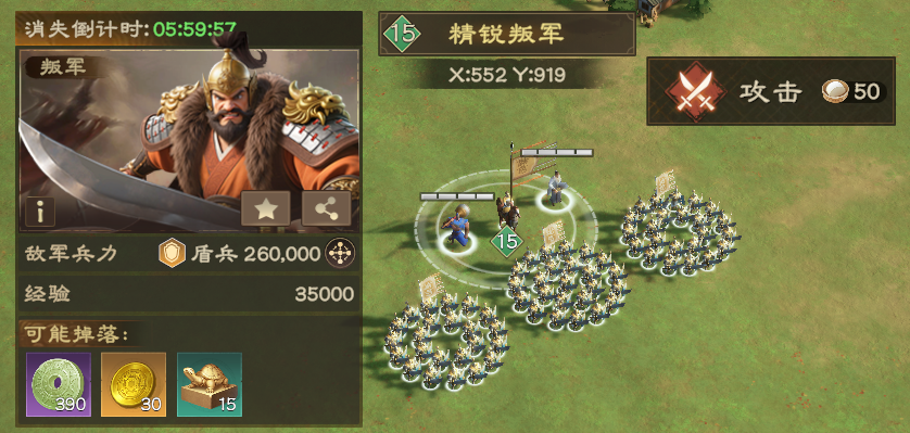 精锐叛军可获得威望和大量经验,可提升武将等级,以及获得赛季军策的升级材料。
