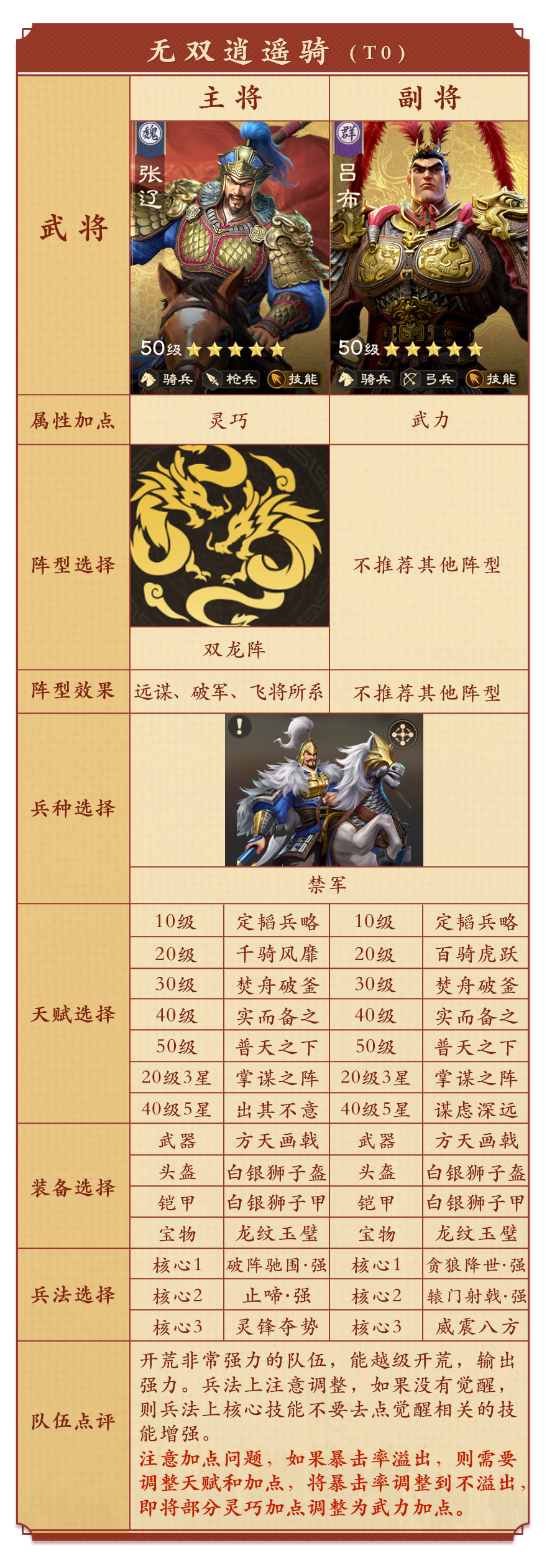 比较强力的技能体系开荒队伍,其中吕布可替换为曹仁