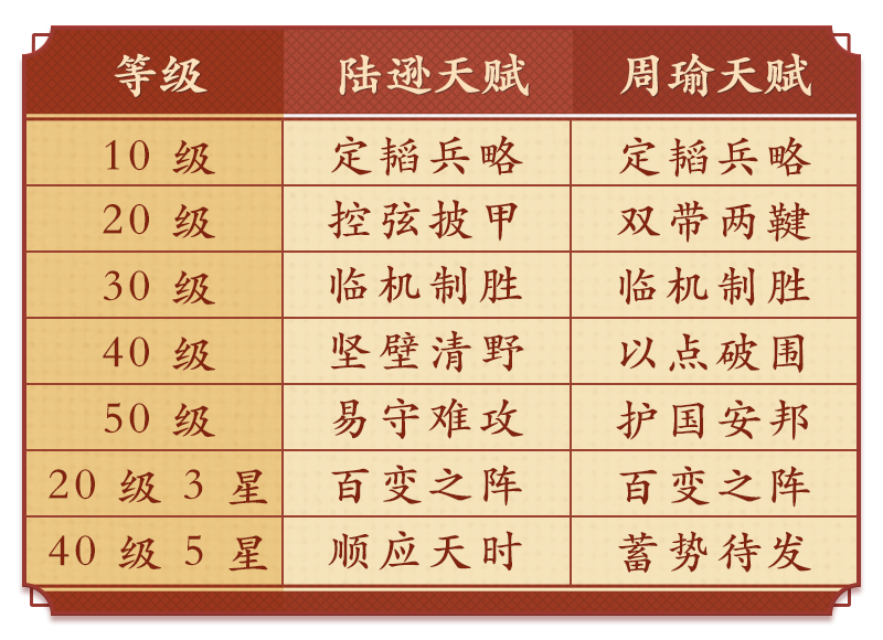 陆逊与周瑜的天赋搭配如下表: