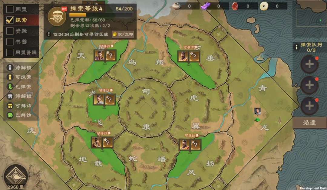 ●主公可派遣谋士重新探索新的地图,领取探索奖励,触发稀有奇遇;