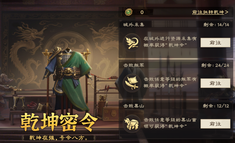 XP1赛季将继续开启装备活动扭转乾坤,主公可消耗乾坤令或者金铢转动转盘,获得海量装备材料,以助主公打造心仪的神兵利器。