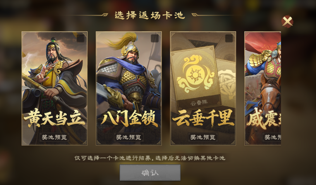 ●一旦选择要返场的限定卡池后将不可更改,请主公谨慎选择。