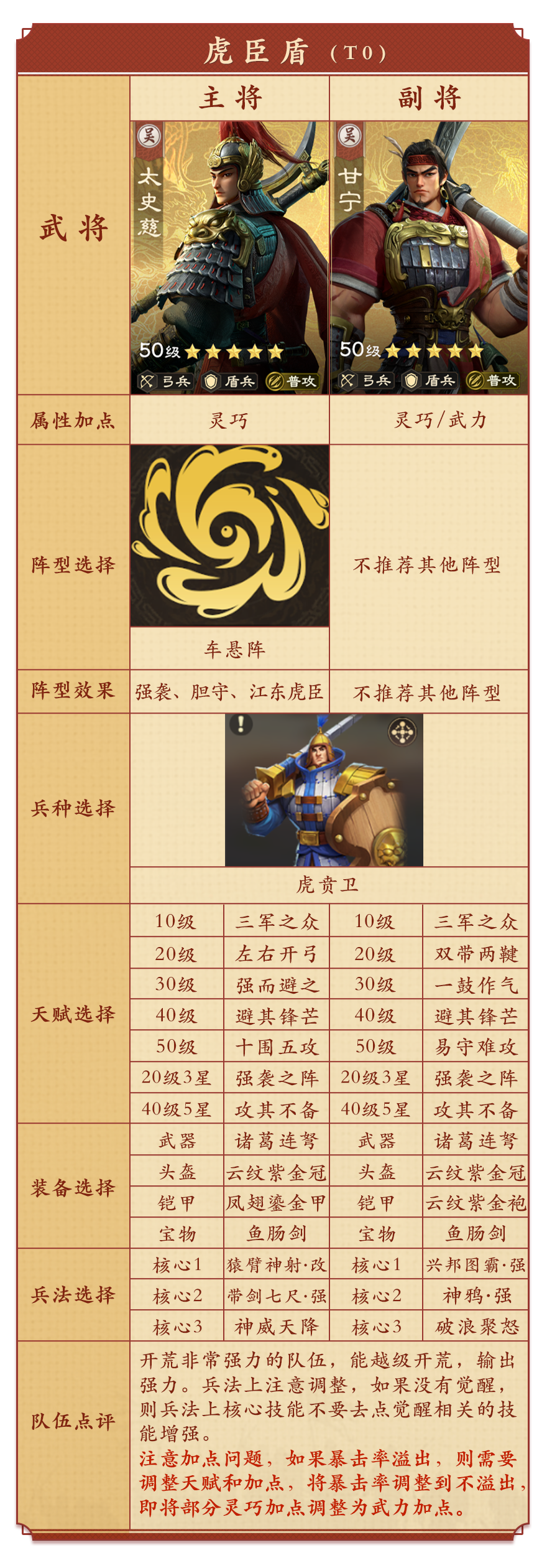 ●比较强力的普攻体系开荒队伍,成本较高,周泰大大解决了孙权的续航问题,攻打时需选择克制的骑兵;