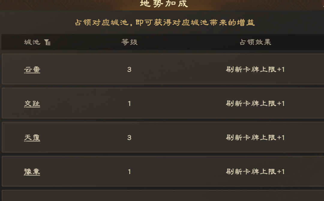 占领城池后,刷新的四象卡牌资源会更多,等级会更高。可刷到更高级的卡牌,以及更多的刷新资源。