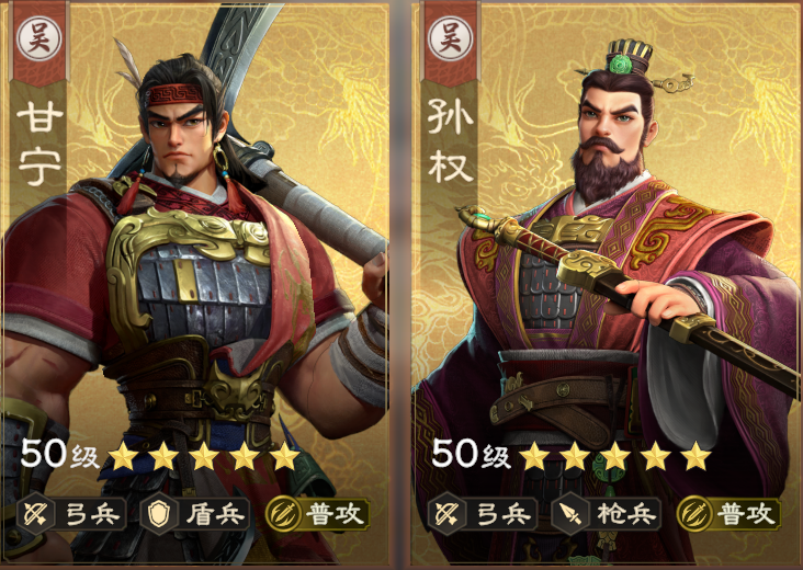 在普攻流体系中,推荐孙权+周泰、甘宁。