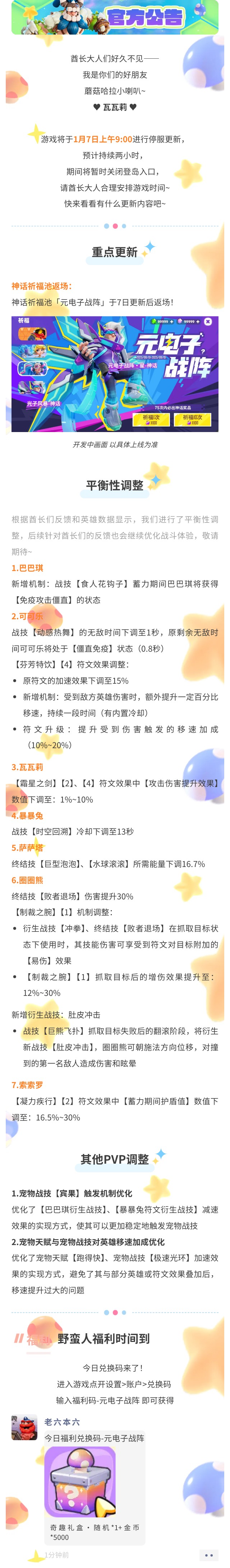 【野蛮人大作战2】1月7日更新维护公告