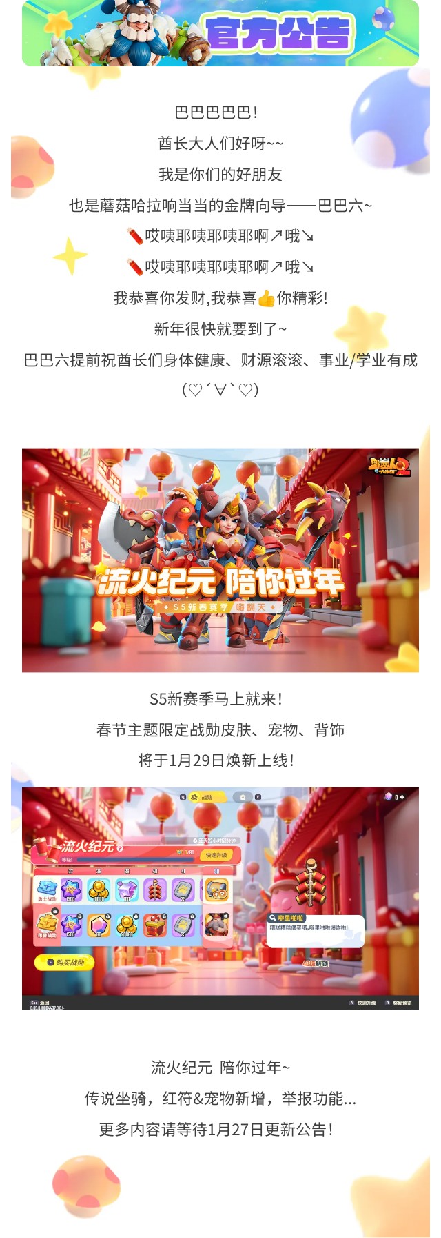 【1月28日新版本爆料】oi!新年将至,S5流火纪元踏马来了!!