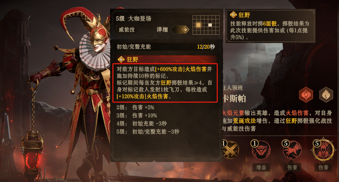 其他的角色龙妈、小丑、号角、欧狗都是选中间的天赋条