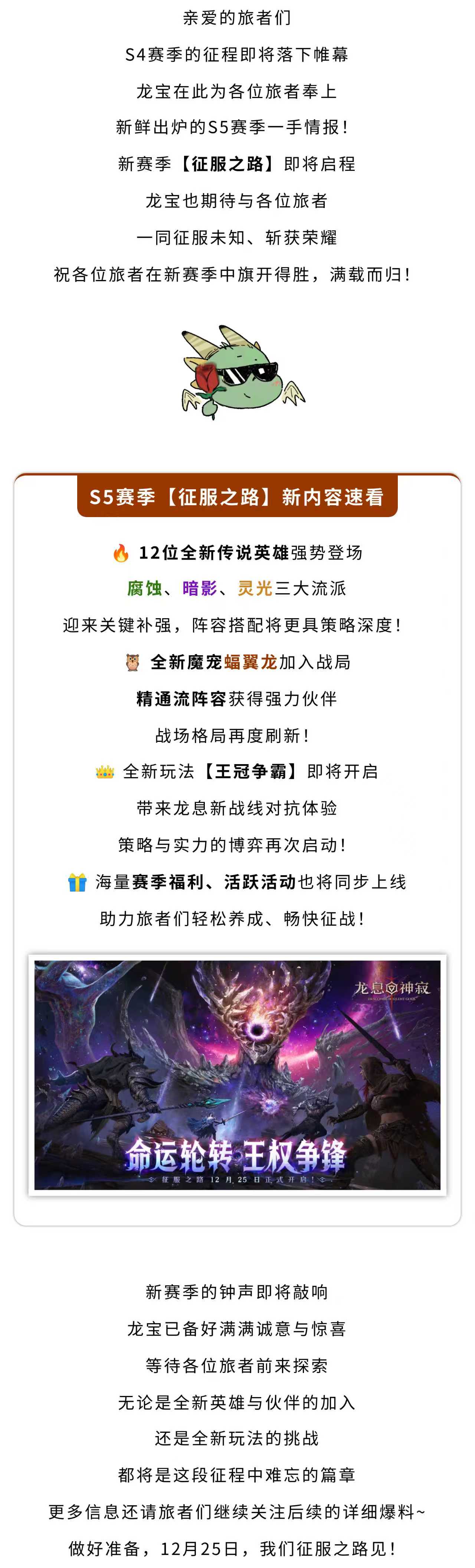 龙息资讯|S5赛季【征服之路】将于12月25日开启!