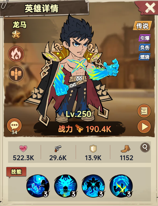 极星烈龙身:受到【负伤】目标攻击时,增加6%自身攻击,持续2回合。受到【燃烧】目标攻击时,自身恢复60%攻击力等量生命。 (以上为技能等级3级描述) “ 龙马的核心在与其独特的【引爆】效果,能高效清理持续伤害层数并转化爆发输出,同时被动受击时能够为给随机对手叠加【负伤】和【燃烧】效果,同时也为另一个被动提供了触发环境,所有技能构建出反手铺场自循环体系,不仅能够作为队伍中的前排抗伤,甚至在一些场合能够以少胜多。