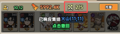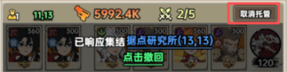 托管:如果不想太费心费力,则可以点击队伍右上角的托管按钮,指挥官就可以派遣你的队伍进驻,指挥官拥有的兵权越多,面对战场局势也更加游刃有余。