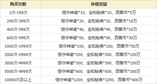 2.从公测开始,截止至2025年1月16日21:00,我们将根据小西普游戏期间内在商城购买的全知秘典数量,补偿一定数量的游戏道具:
