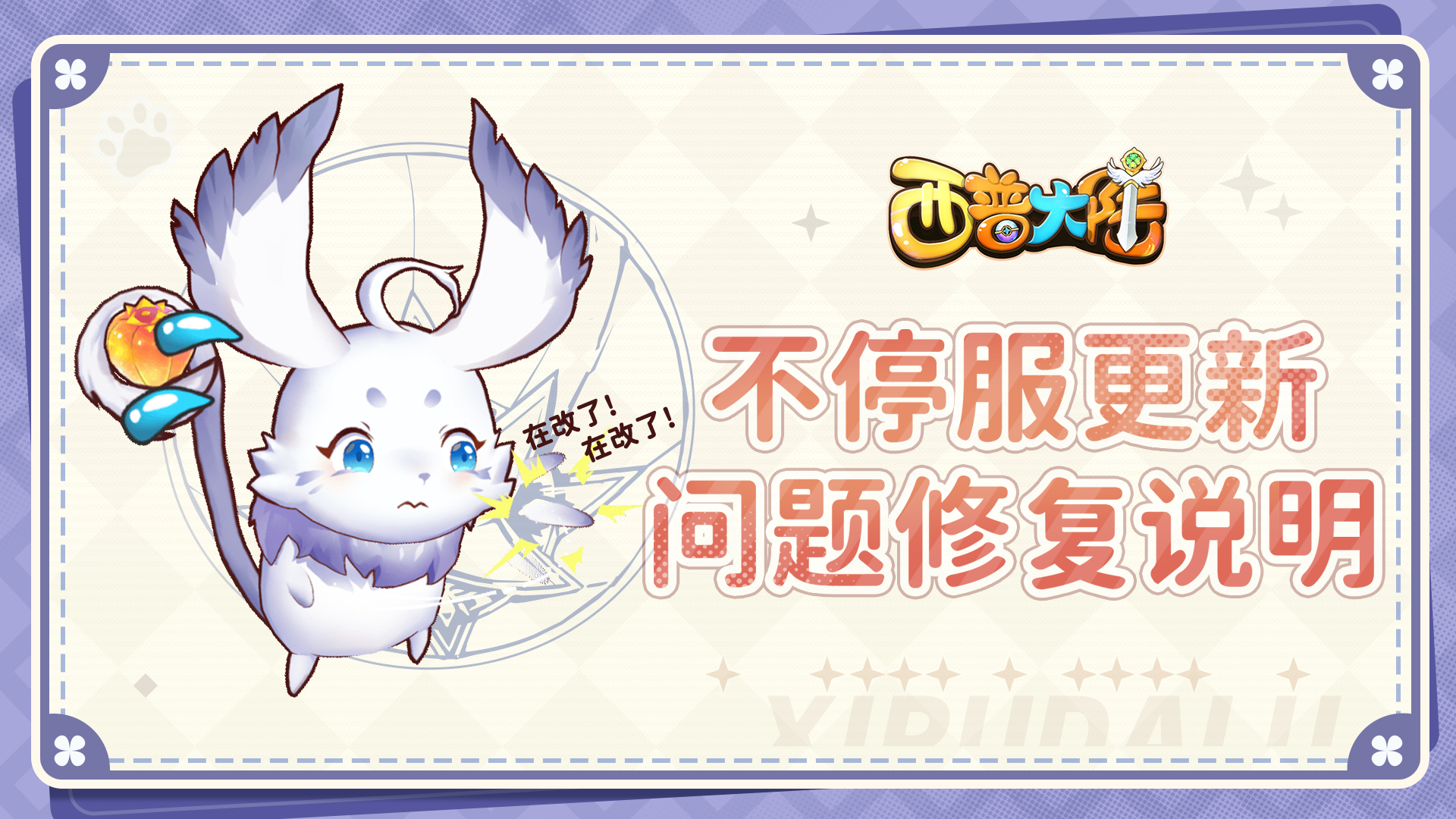 《西普大陆》手游已于18:00~18:30进行不停服更新,本次不停服更新将对下方内容进行修复与优化,届时烦请各位小西普重新登录游戏并完成数据加载,以便体验最新版本内容,感谢小西普们的反馈与支持。