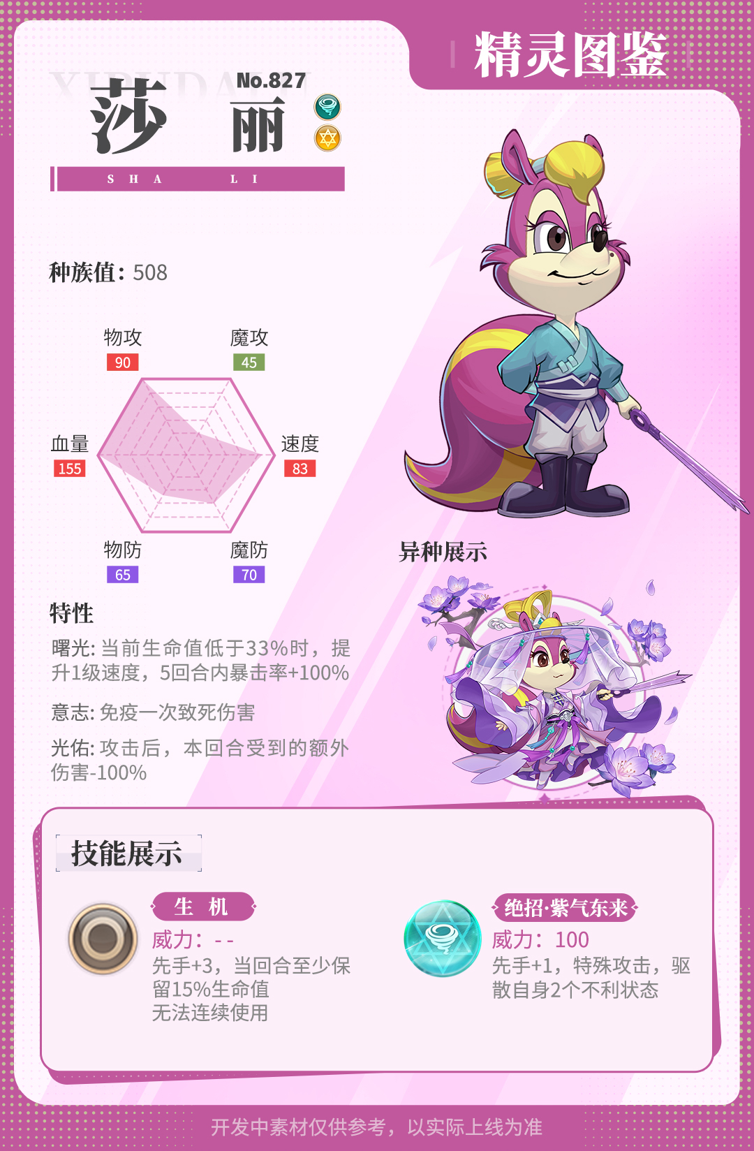 *注:展示数据取自精灵最高阶形态,数据源于测试服,具体数据以游戏实际线上版本为准