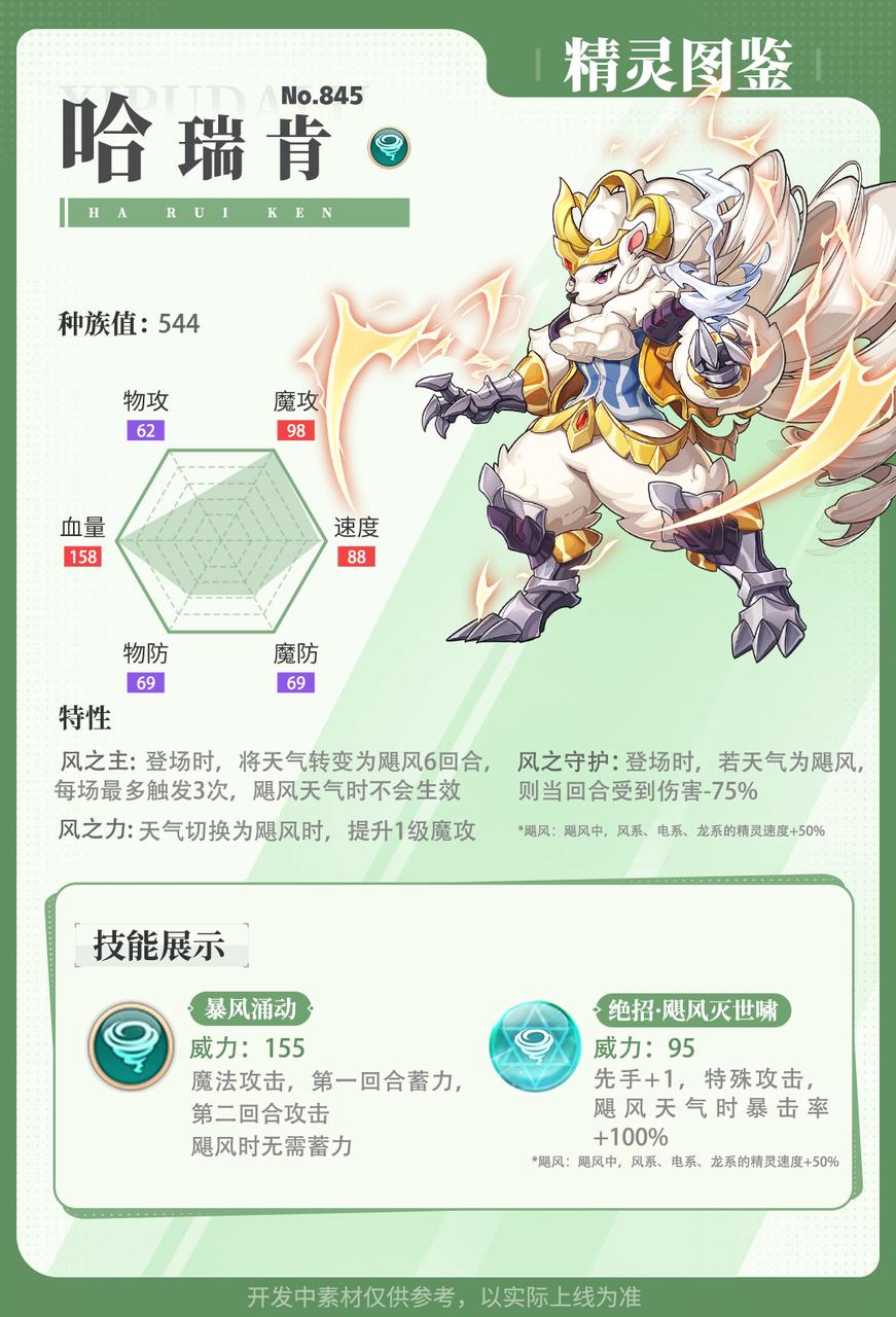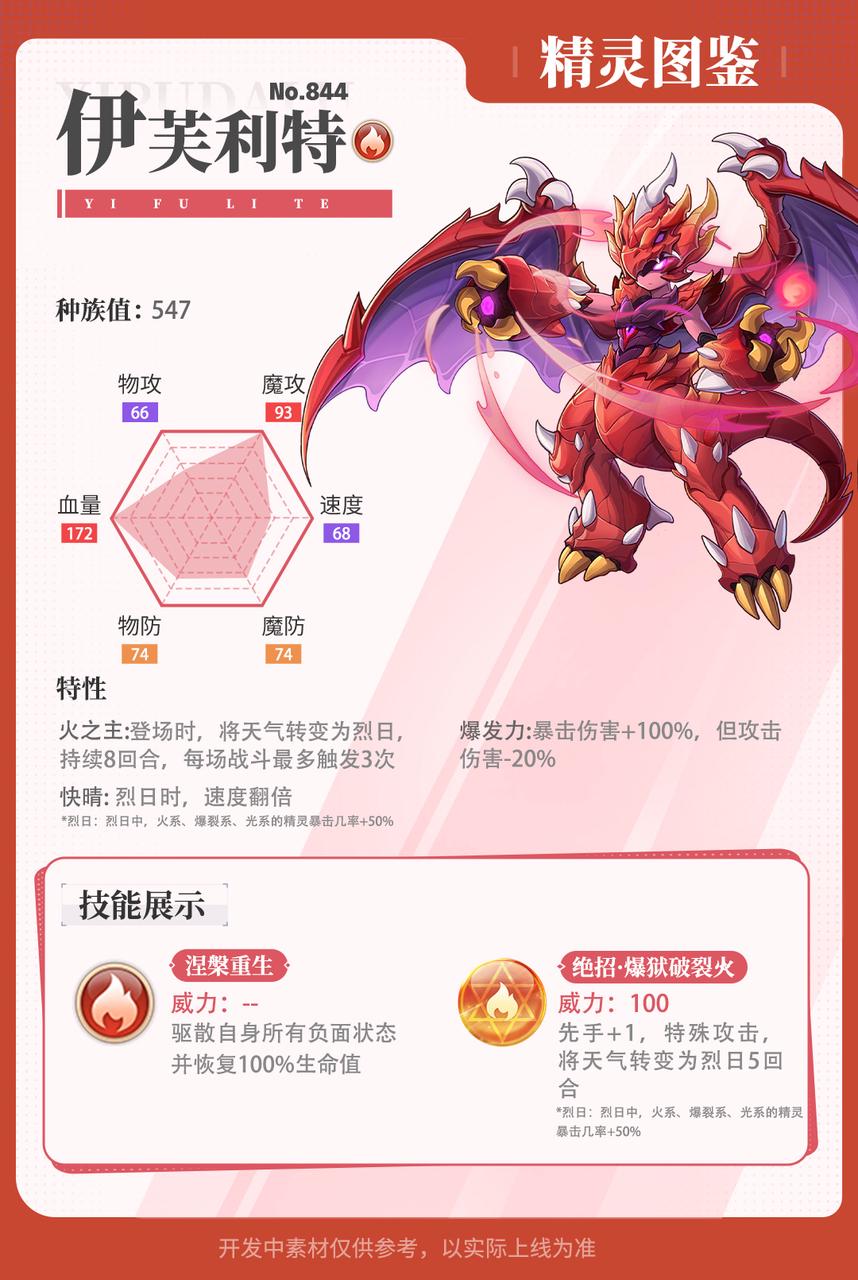 *注:展示数据取自精灵最高阶形态,数据源于测试服,具体数据以游戏实际线上版本为准