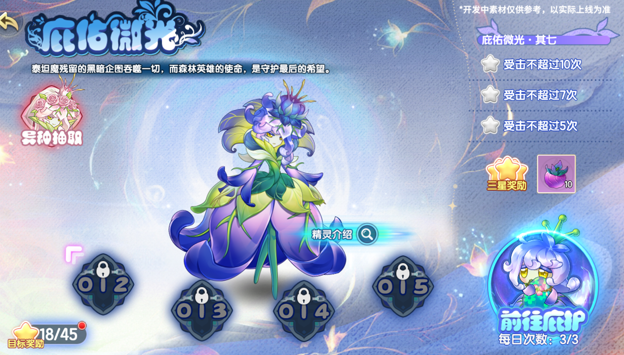 本次更新后将新增9个关卡,累计获取36星后可领取草苞儿进化晶核——草灵晶核。