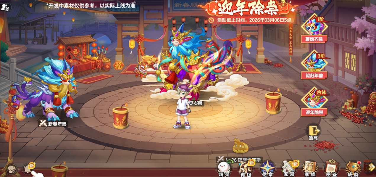 进入活动场景后,小西普们将化身为可爱的精灵,可以和全服的小伙伴们一起燃放烟花,热热闹闹过大年!过年怎么能少得了打年兽?传说中的“合体年兽”凶猛来袭!