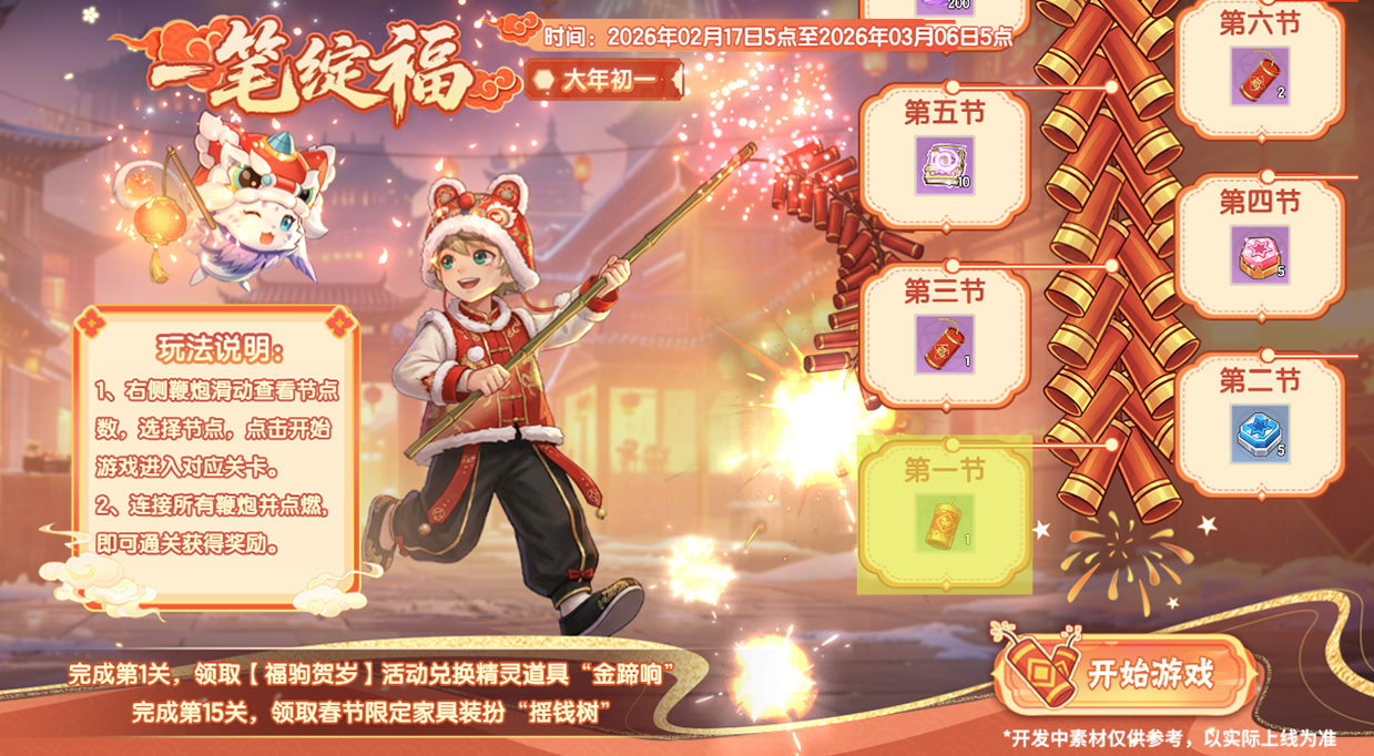 活动奖励:限定家具--摇钱树、启慧之书、新春鞭炮等奖励