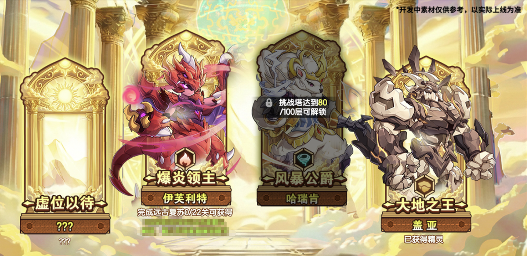 此次上线的精灵——风暴公爵·哈瑞肯以及爆炎领主·伊芙利特为至尊精灵,同为四大古神之一·盖亚的精灵标签将调整为【至尊精灵】。