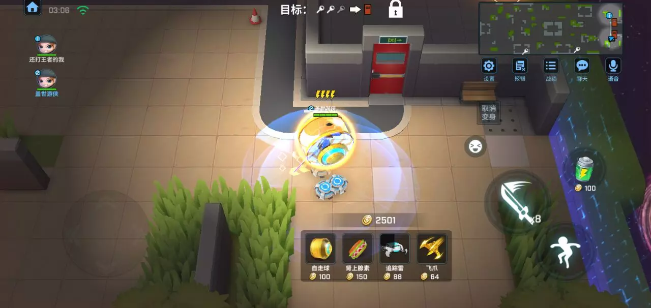 2、“追踪雷”除了可以当陷阱使用,其实还可以用来脱身使用,在前期,你可以在你开的那个钥匙右侧放置一个追踪雷,一般如果追捕者靠近的话,基本是就有很大的几率触发。相比于用道具卡摆脱追捕,这种布局更加简单有效。