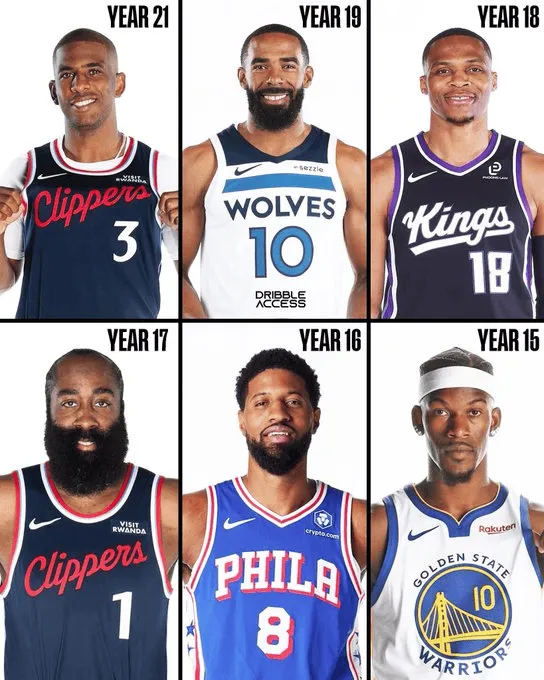 图中的球员分别是保罗、康利、威少、哈登、乔治、巴特勒。