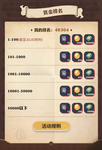 12月15日起,预创角活动页面开放自定义UID专属入口,赏金榜排名前100的船长们可进入后自定义UID~专属入口当日23:59就会关闭,赏金Top100的船长注意时间哦~