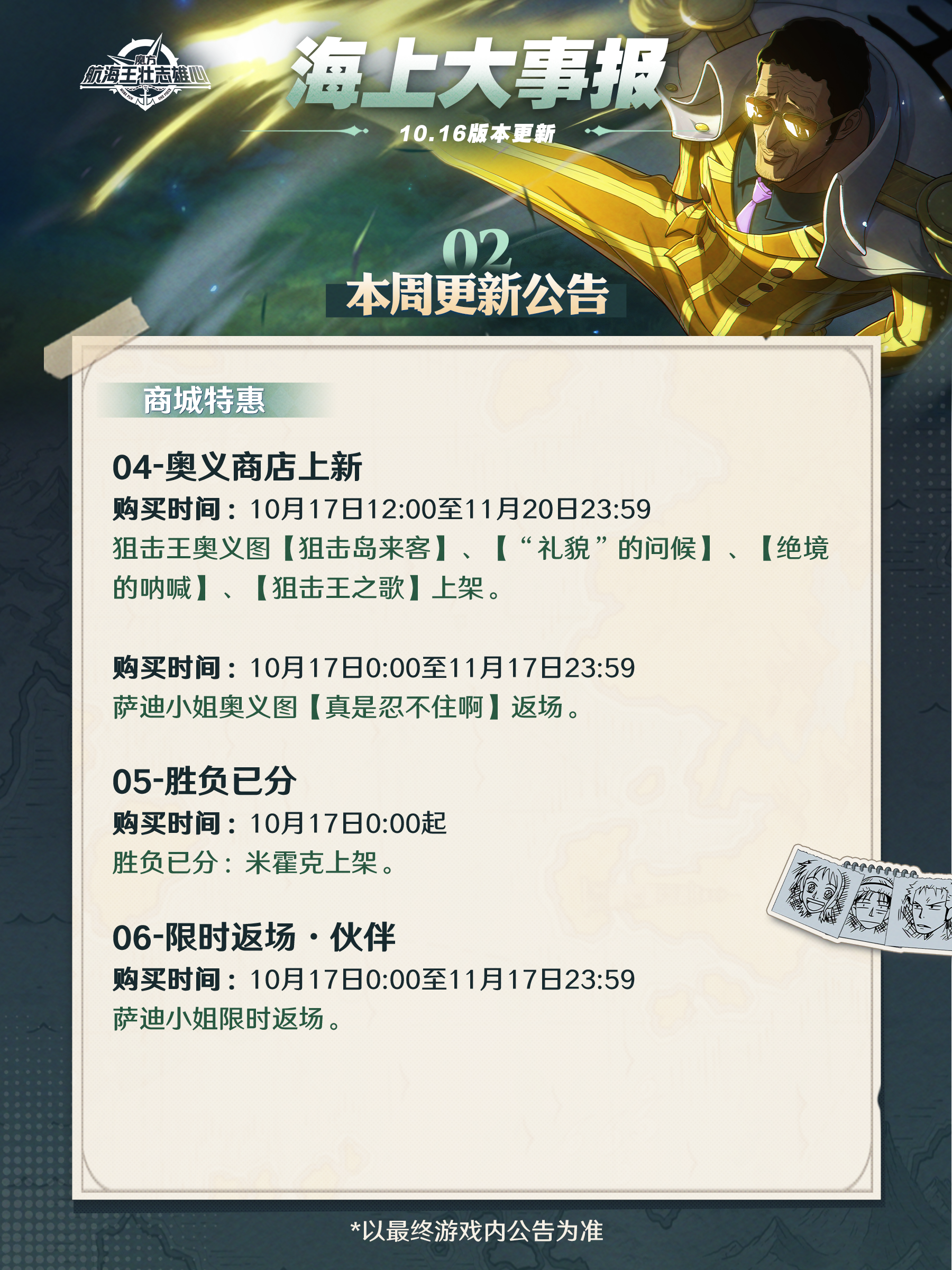 狙击王·恐怖之船限定时装、小八·章鱼烧摊主时装同步上架;