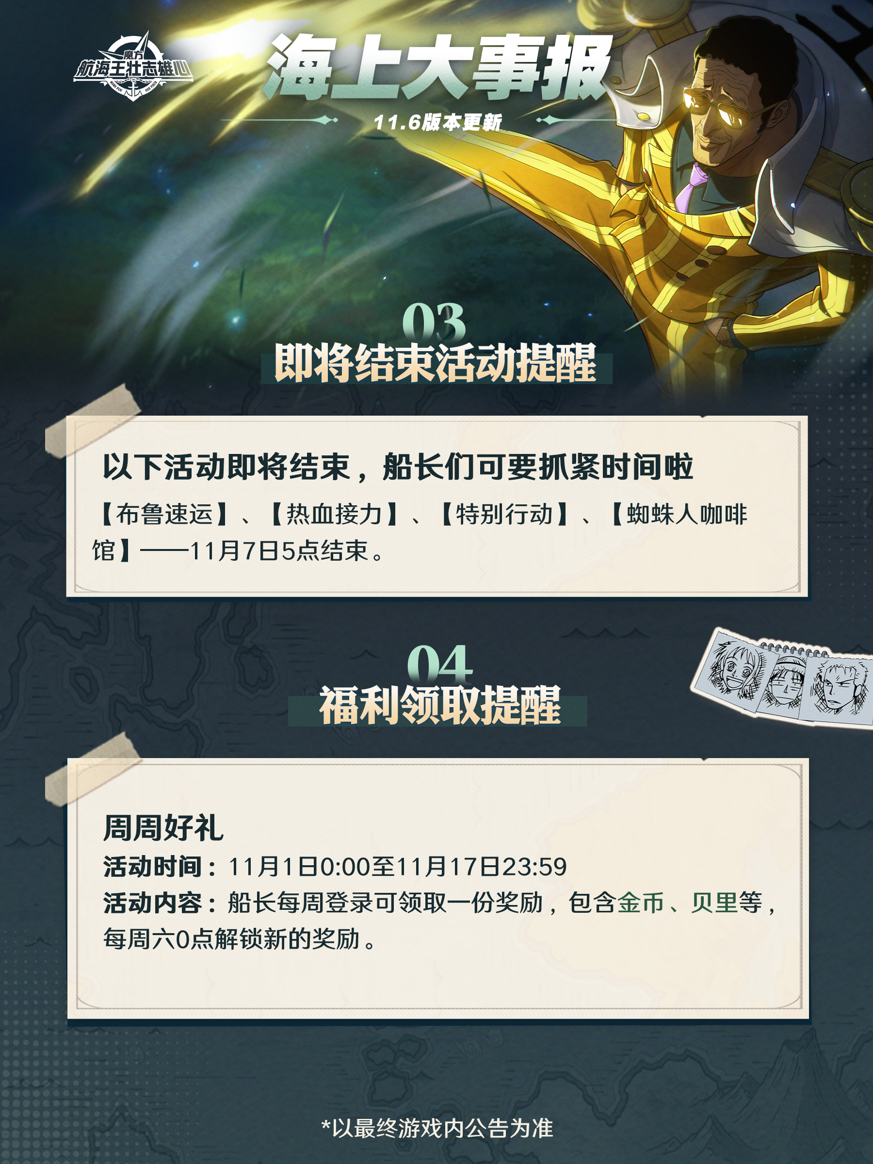 海上大事报|新伙伴战国11月7日登场