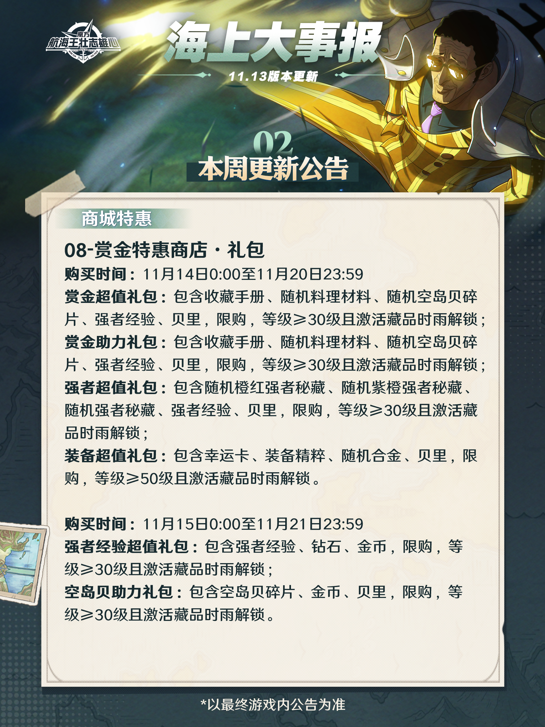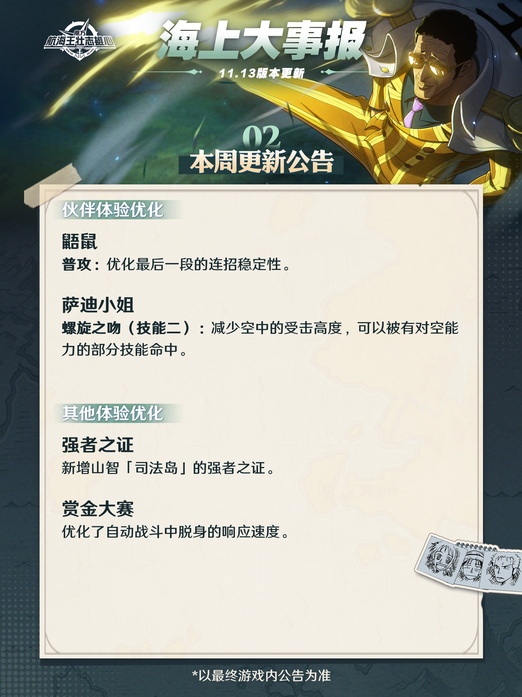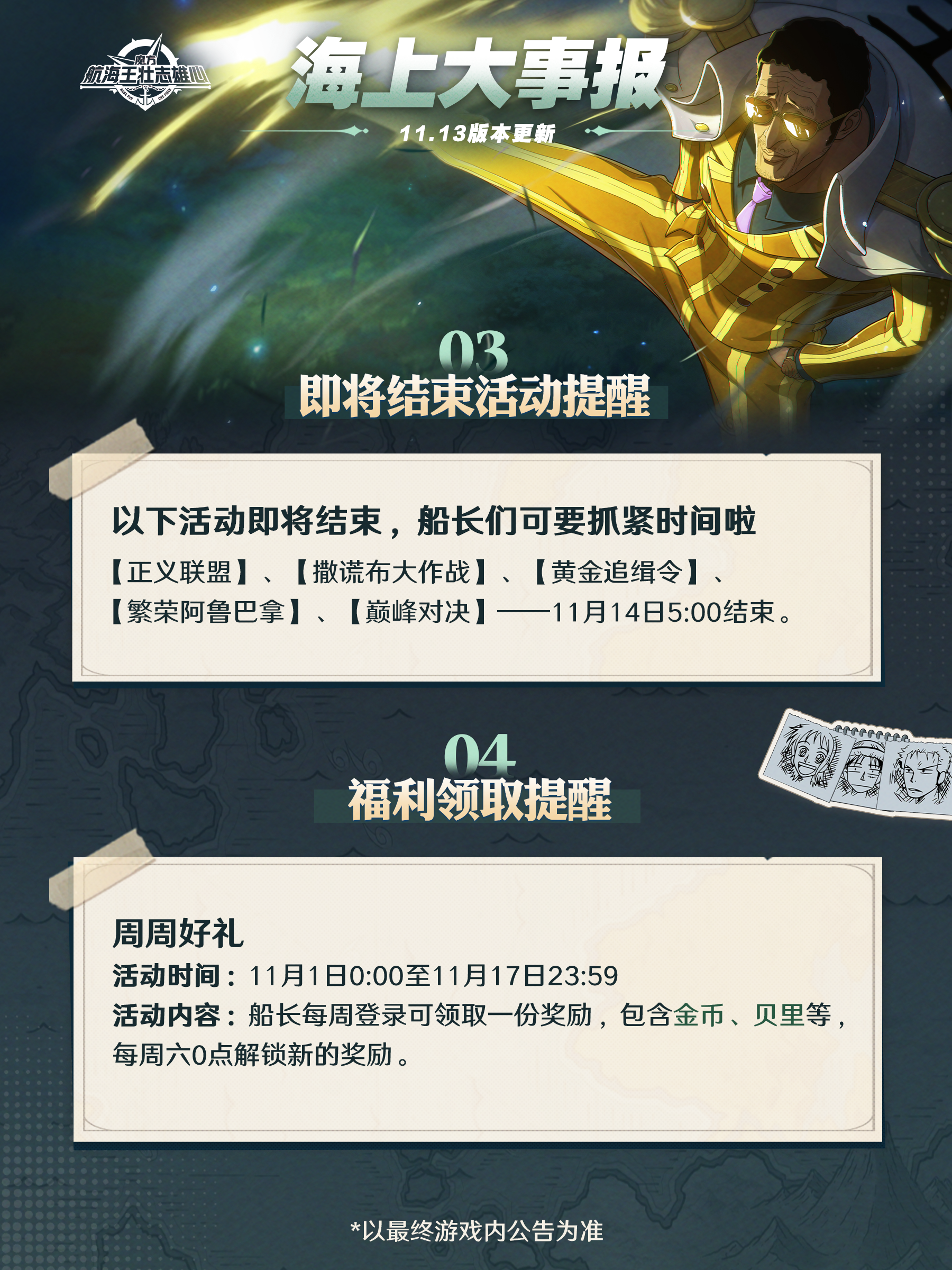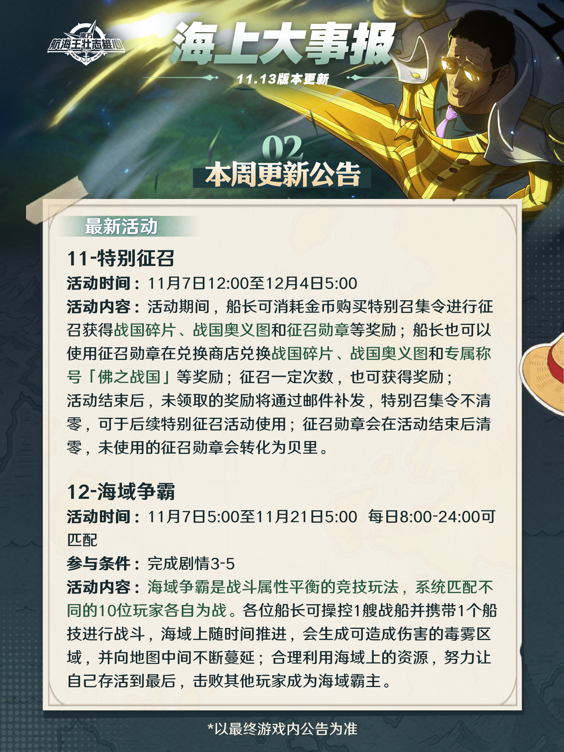 胜负已分:路飞「司法岛」、胜负已分:战国上架将于11月14日上架,