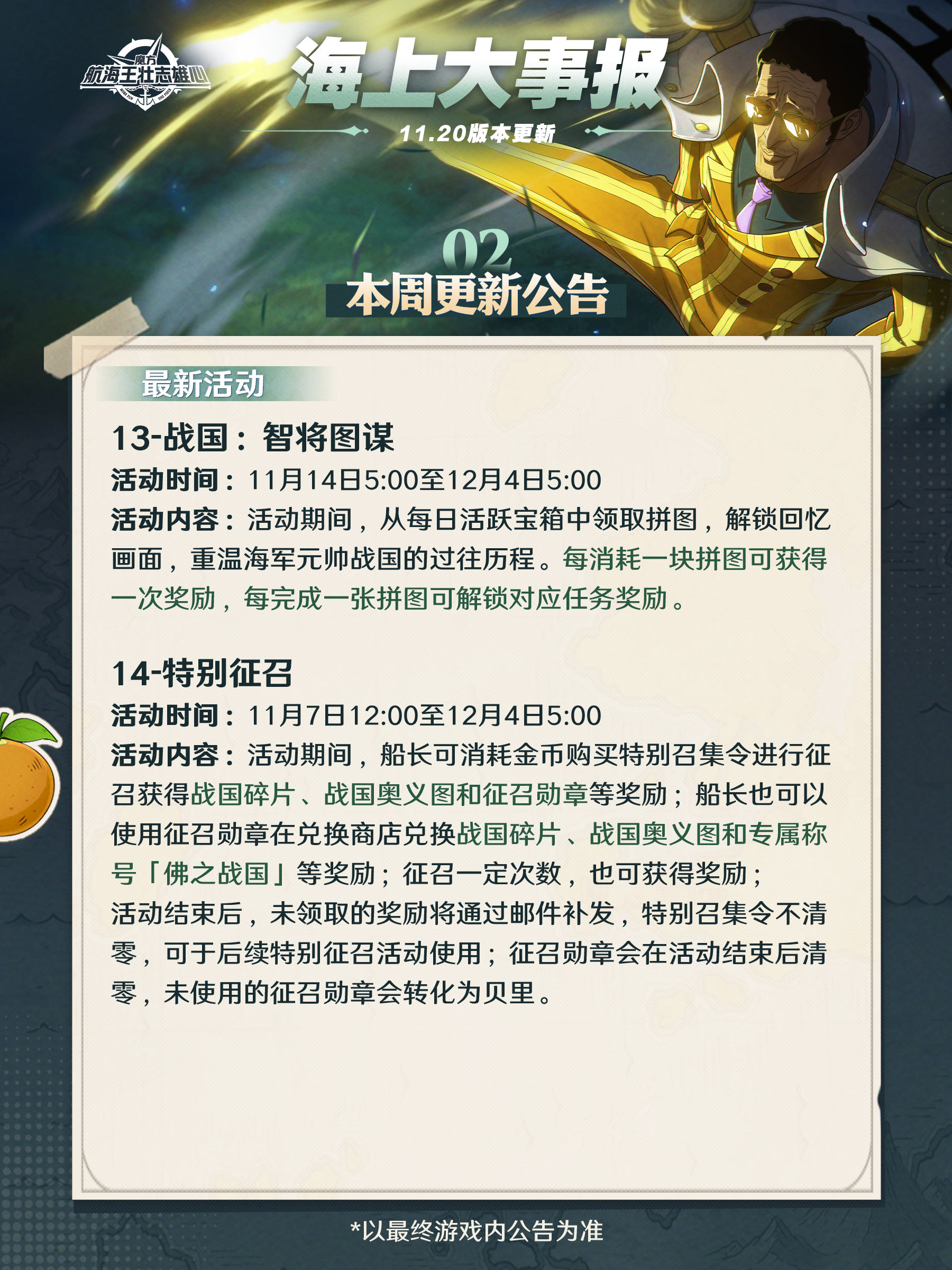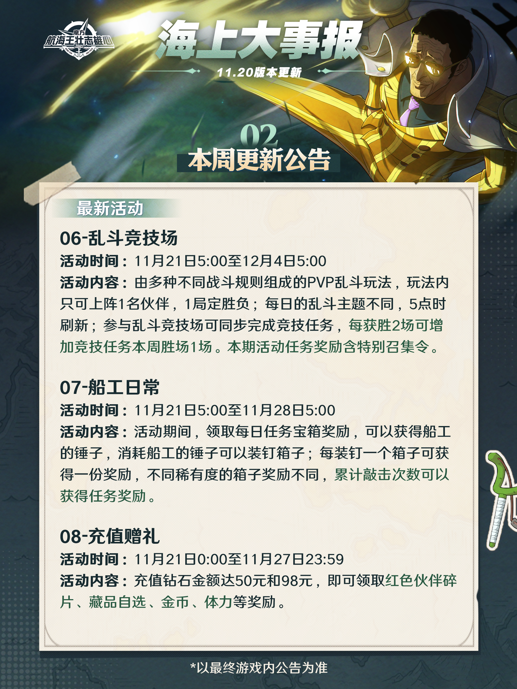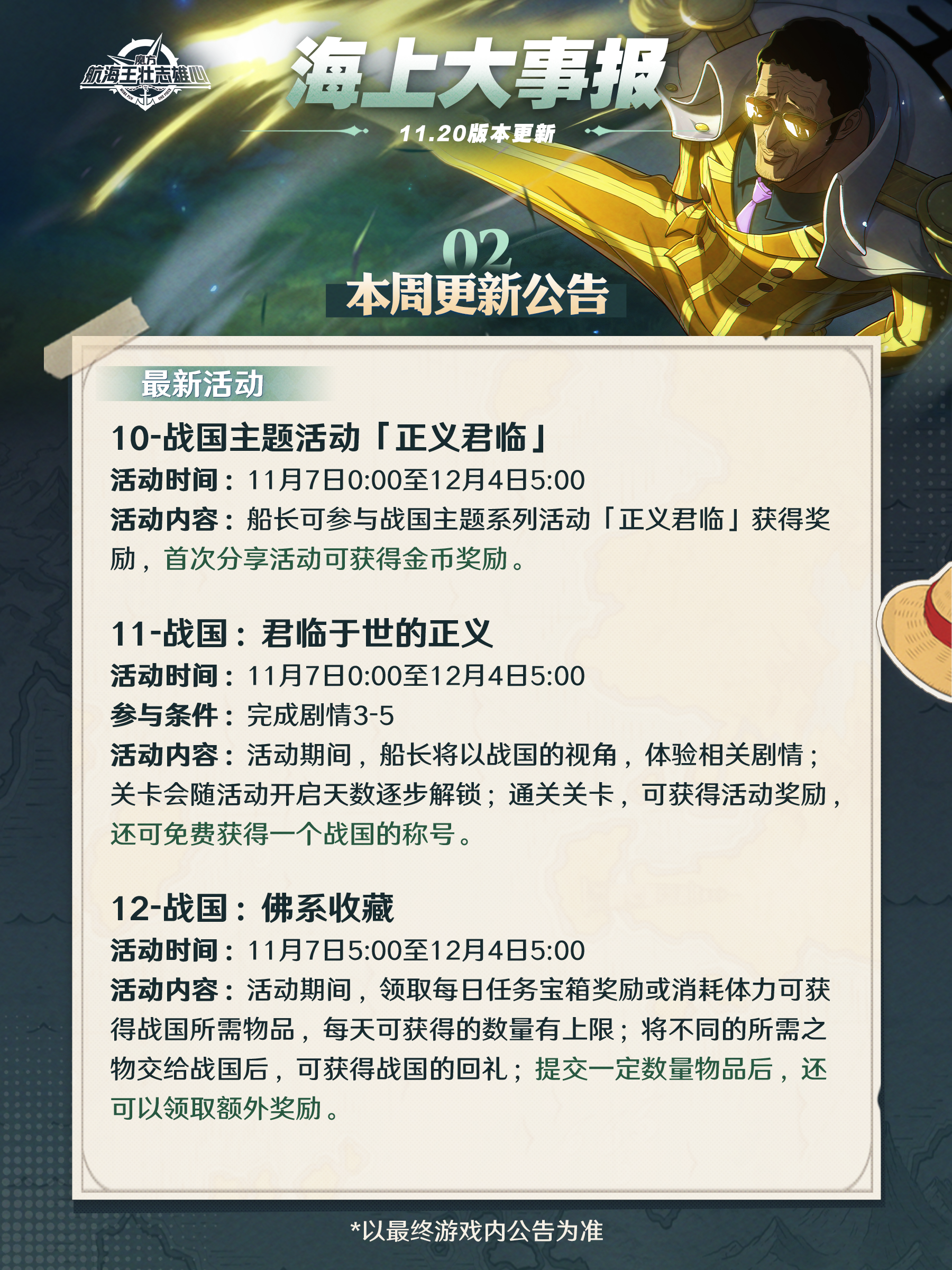 路飞「司法岛」碎片11月21日上架,佳妮法及其奥义图同日返场。