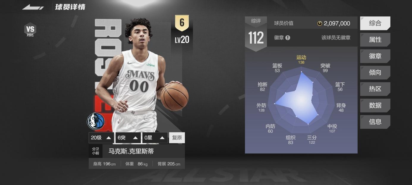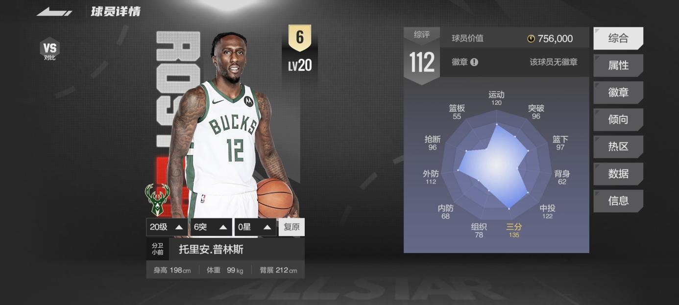 特雷西:虽然克莱.汤普森本赛季由于年龄和状态可能会在未来版本有一个下滑,但是游戏内的身价也已经下跌至单卡40w以下。在这个价位,克莱.汤普森还是非常有竞争力的,符合这个价位的强度,然后就算现在卖出也很难找到更合适的平替,推荐继续使用汤普森担任首发得分点
