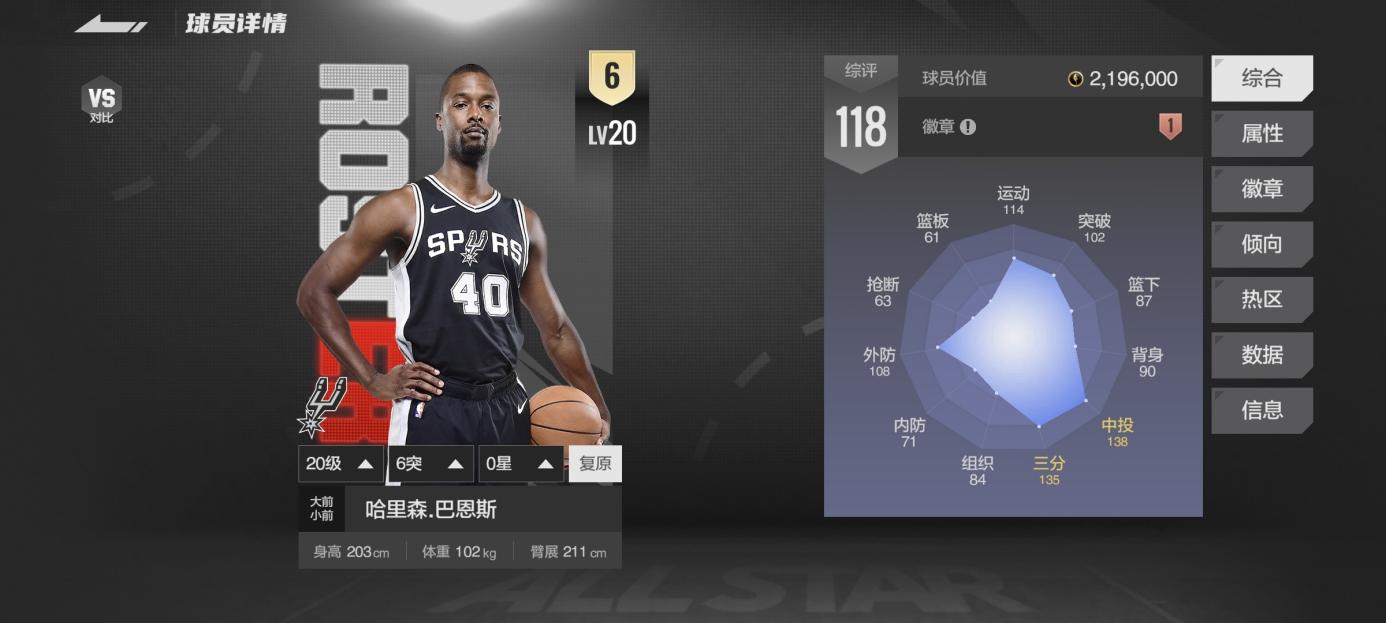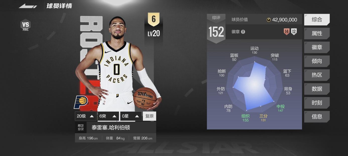 我觉得最优先级补的球员是和约基奇非常适配的五外单打手哈利伯顿。哈利伯顿利用自己银色运球好手徽章来进行单打,非常简单高效,而且还有十美分,可以给约老师去加准度。并且由于哈利现实里暂时上不了场,所以他的数据大概率近期都不会有太大的变化