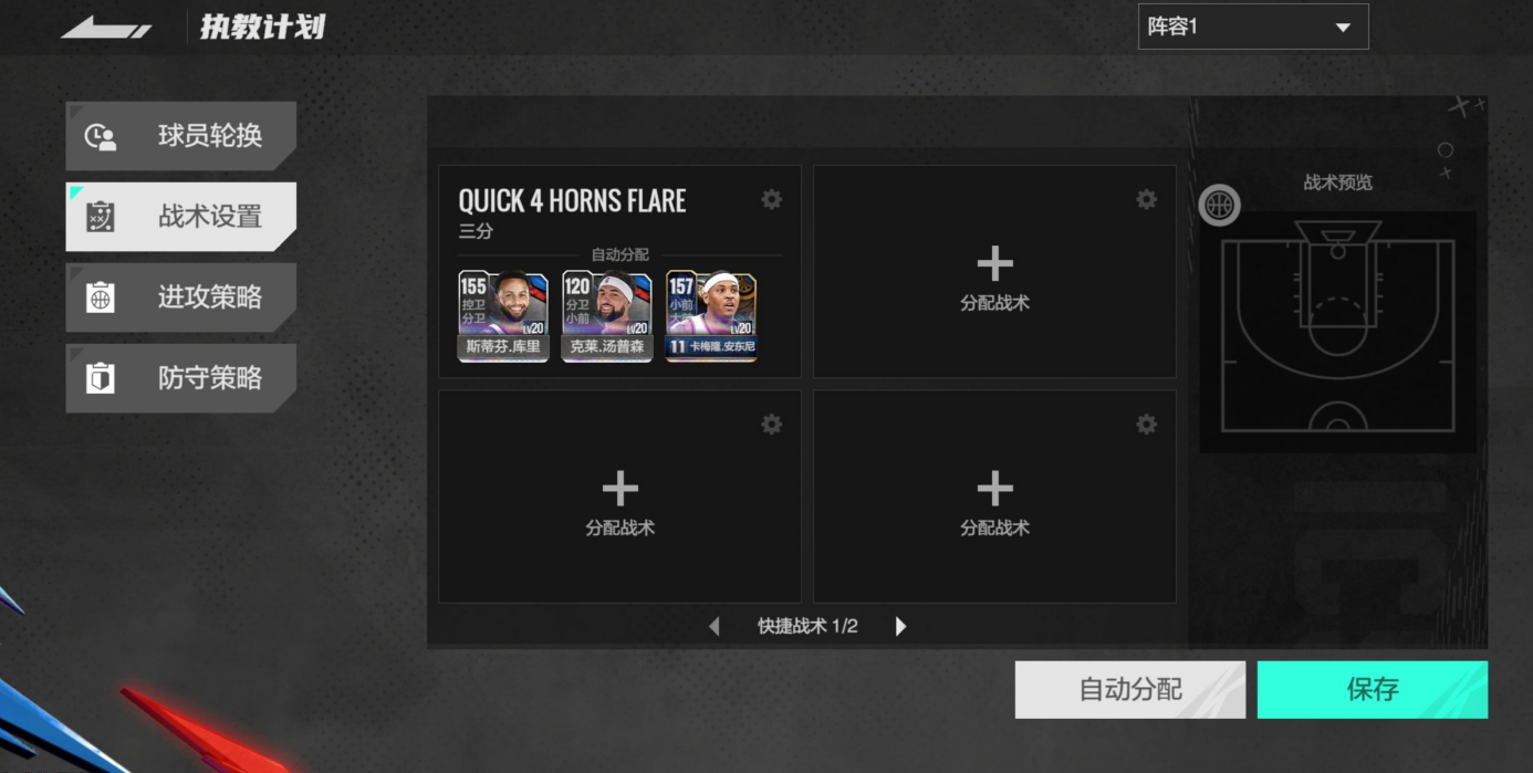 整体的打法推荐可以给克莱去设置Q4战术,以这个三分战术打法为主要进攻手段