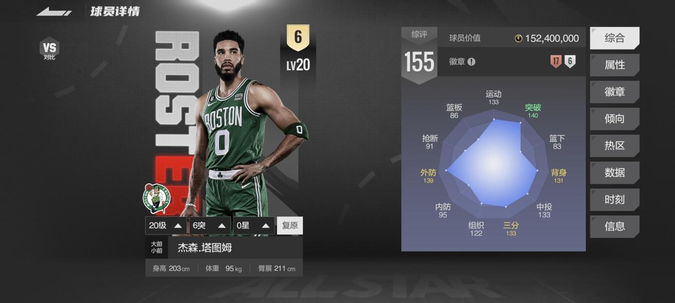 三号位科比和四号位塔图姆也是游戏里T0位置
