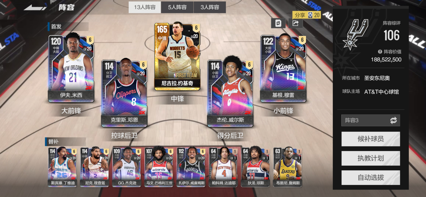 特雷西:号主的玩法大家可以参考一下,先存出来一个巨星级别的球员带队,给阵容的提升是特别大