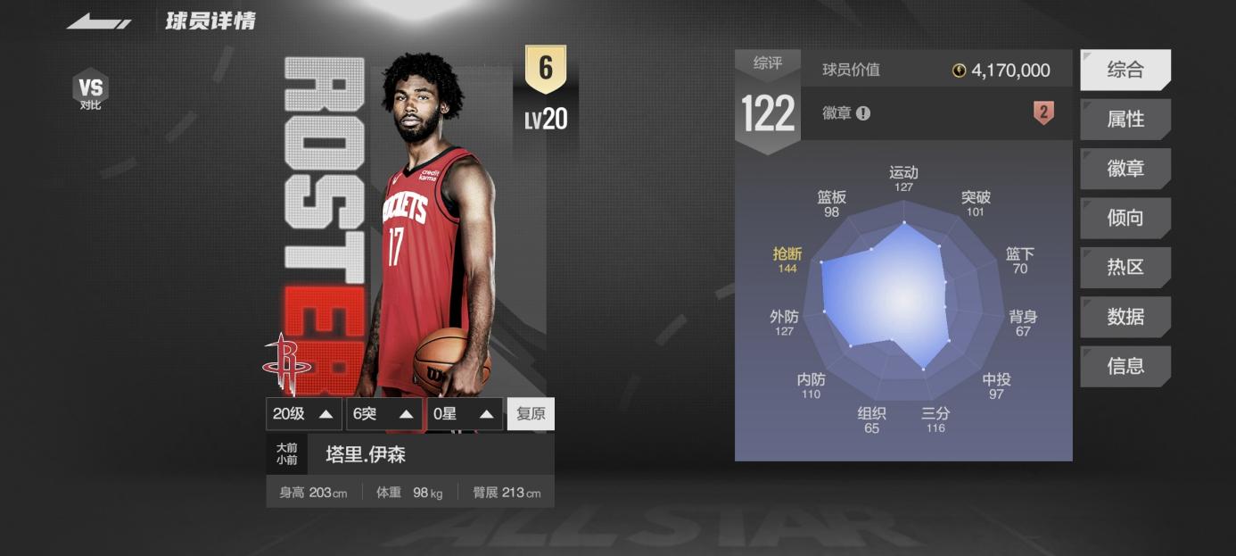 四号位可以使用火箭队的塔里.伊森。伊森本赛季开赛三分球命中率非常高,有望在未来迎来大加强,这是我认为首发的补强选择