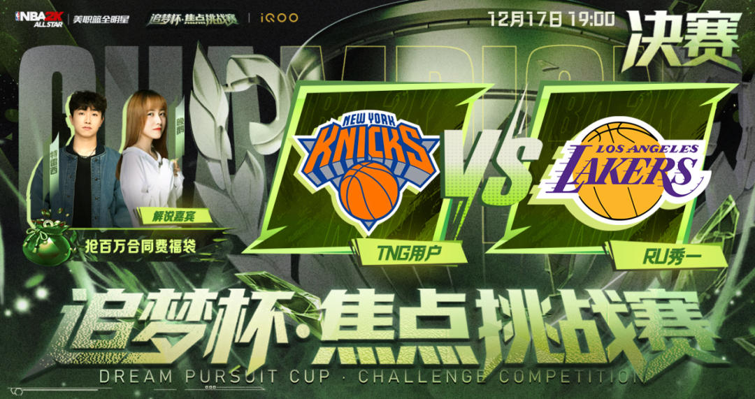 12月17号晚7点将在美职篮全明星官方直播间进行本次赛事的总决赛直播。特邀嘉宾特雷西和晚鹅将为大家带来精彩的直播解说,来直播间观赛,抢百万合同费福袋!