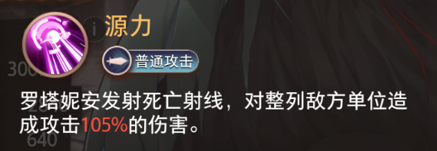 罗塔妮安发射死亡射线,对整列敌方单位造成攻击105%的伤害。