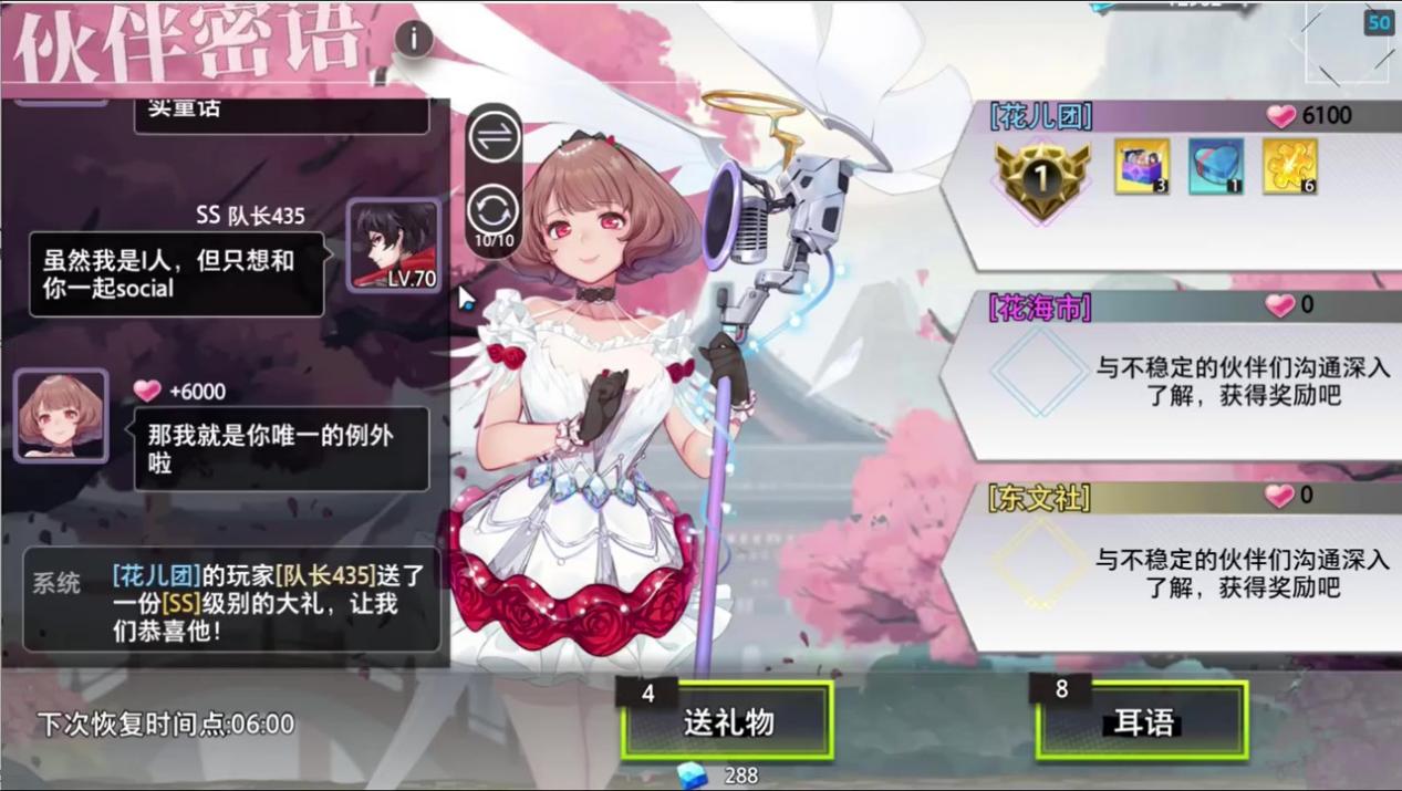 一阶段结社成员通过夸赞和送礼,在选中不稳定的伙伴处获得奖励累积,夸赞和送礼的次数会随自然时间恢复。