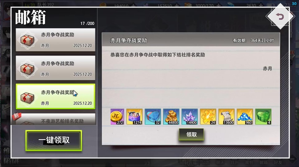 比赛24小时结束后,根据三个结社积分排名发放奖励。第一名结社获得备战奖励的200%,第二名150%,第三名100%。