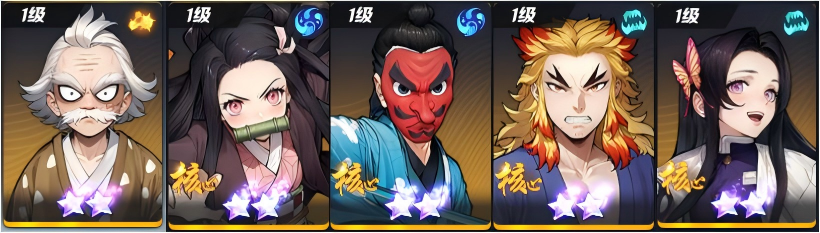 阵容推荐2(桑岛慈悟郎、灶门祢豆子、鳞泷左近次、炼狱槙寿郎、蝴蝶香奈惠)