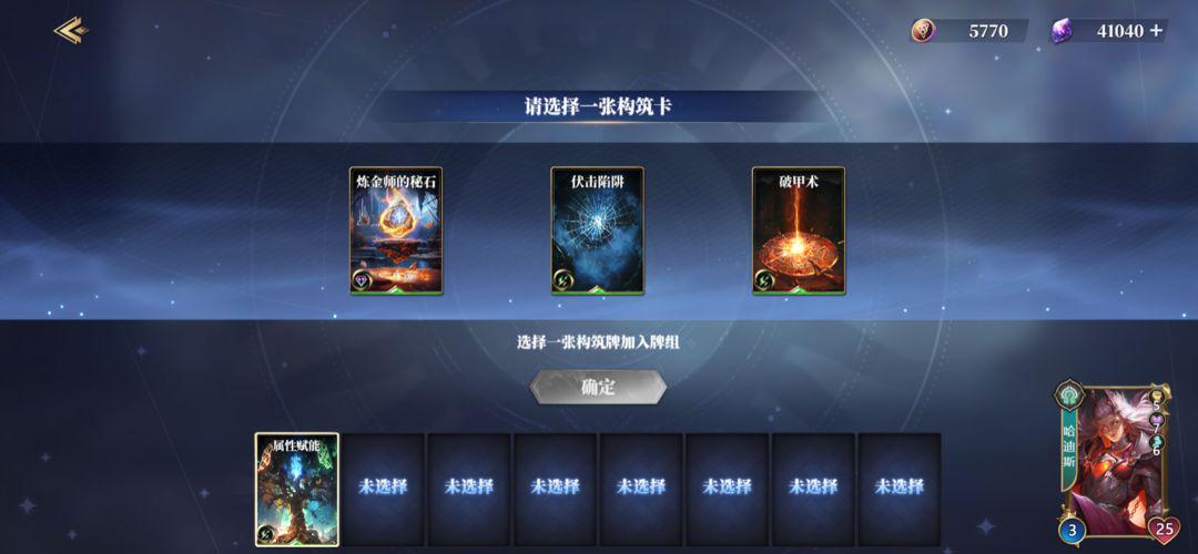 - 系统随机每次发放3张构筑卡,您选择其中1张加入卡组