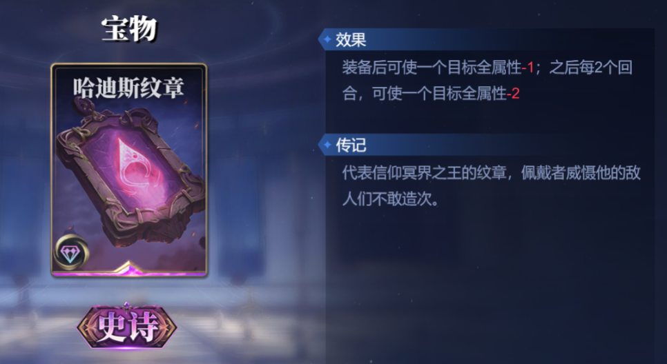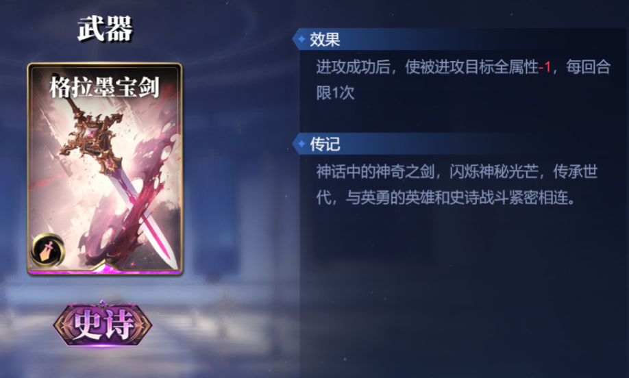 哈迪斯纹章,在装备时就可削减对手1点全属性。格拉墨宝剑,则是在进攻成功时,即可使被进攻目标全属性-1。都是比较好触发效果的装备。