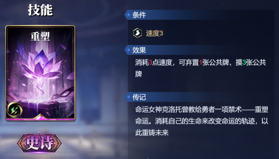 重塑和幸运硬币能快速帮助神农获取公共牌。因为速度属性神农并不怎么需要,而且就算幸运硬币的判定没过,3点生命值对于神农来说是很容易回复回来的。