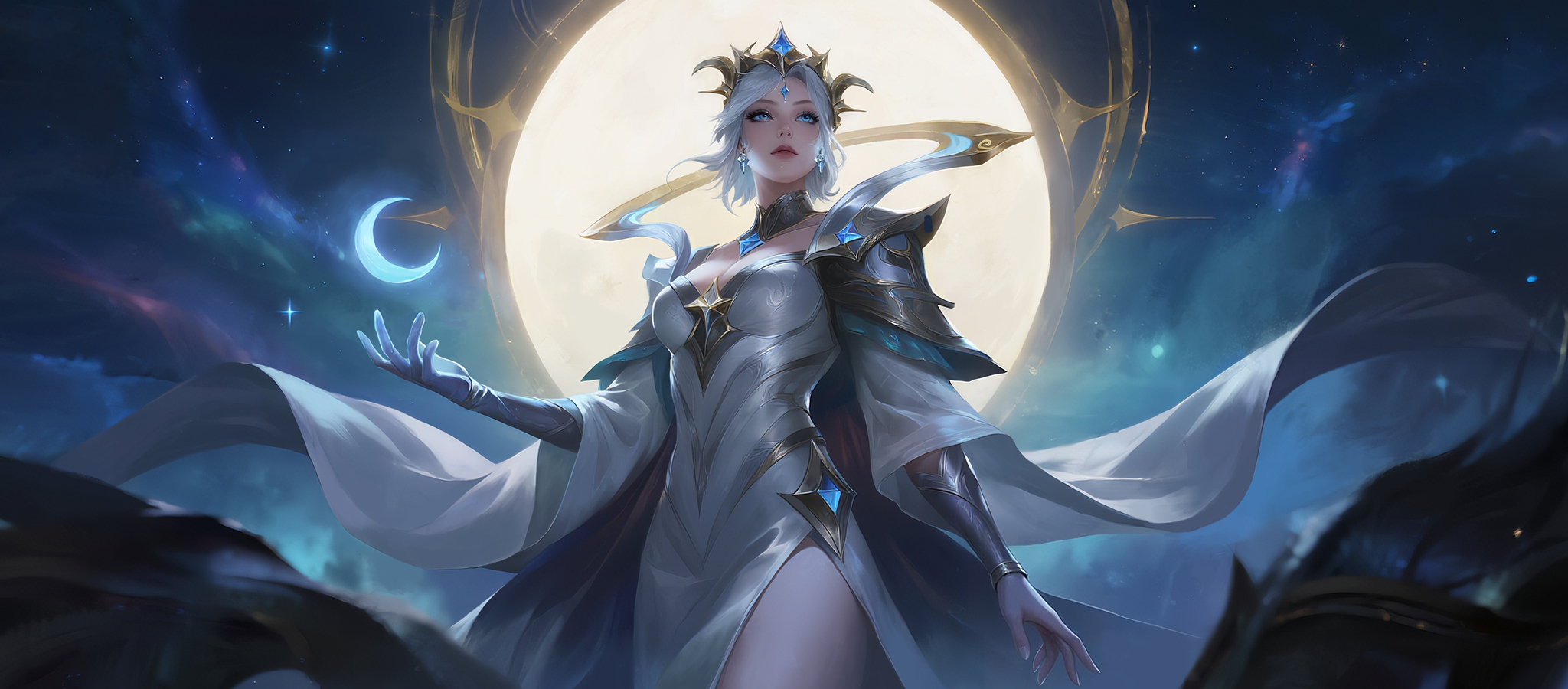塞勒涅-限定皮肤 银辉月后 同期上线注:该限定皮肤无法合成,仅可通过购买第八赛季真万神秘典获取