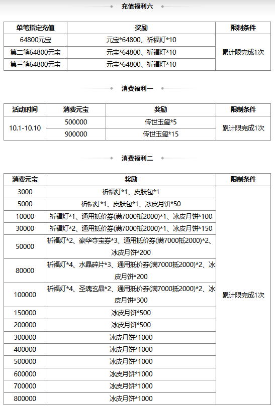 1、活动期间,每消费100元宝,可获得庆典积分*1,不限完成次数;