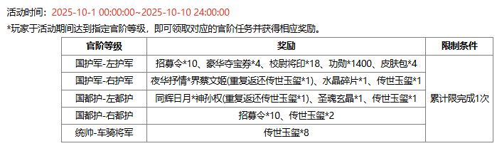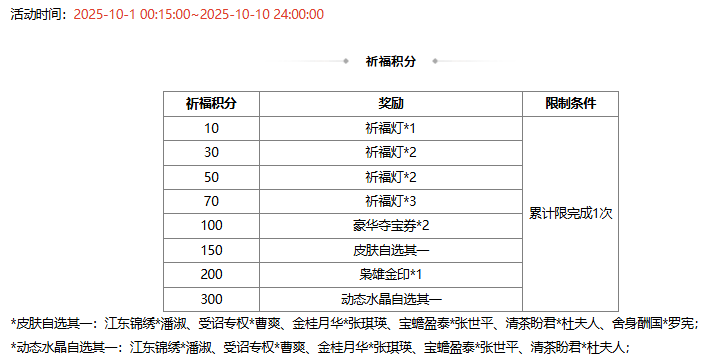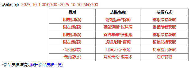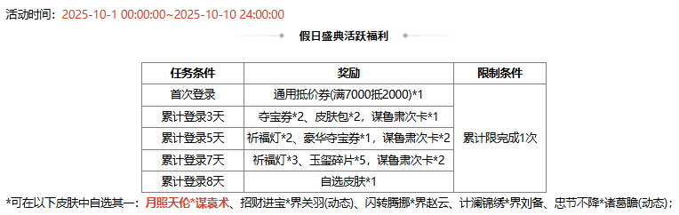 *请以游戏内为准。活动时间:2025-10-1 00:00:00~2025-10-10 24:00:00