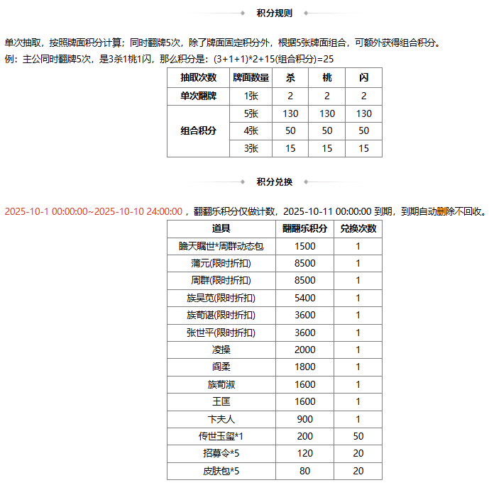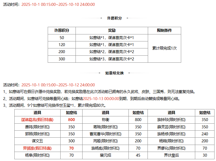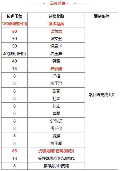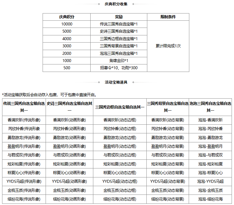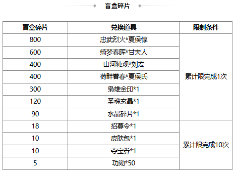 2、若兑换奖励是在此次活动前已拥有的永久武将、皮肤、三国秀,则无法重复兑换 ;
