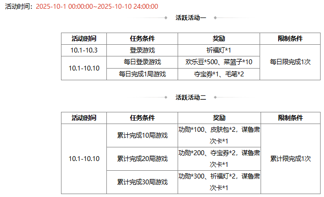 活动时间:2025-10-1 00:00:00~2025-10-10 24:00:00